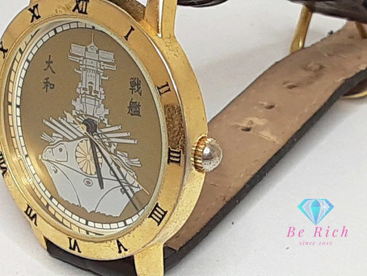 戦艦 大和 メンズ 腕時計 ゴールド シルバー SS GP レザー ブレス アナログ クォーツ QZ ウォッチ メーカー 記載なし ノー ブランド ヤマト 【中古】【送料無料】 ht5728