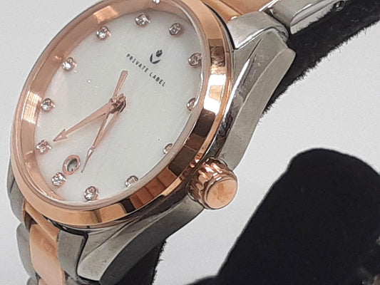 プライベート レーベル Private Label レディース 腕時計 デイト PL0139 白 ホワイト シェル ピンク ゴールド シルバー SS GP ブレス アナログ クォーツ QZ ウォッチ 【中古】【送料無料】ht5561