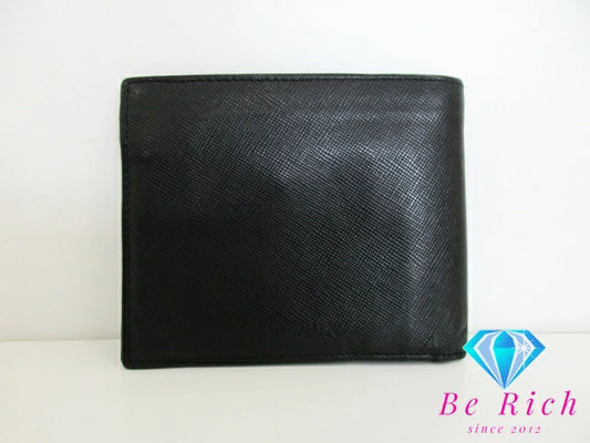 プラダ PRADA メンズ 二つ折り財布 サフィアーノ レザー 黒 ブラック ロゴ コンパクト ウォレット 【中古】【送料無料】 bs3644