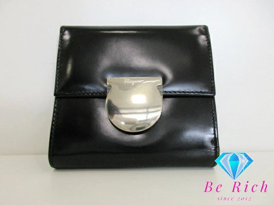 サルヴァトーレ フェラガモ Ferragamo 三つ折り 財布 228083 ガンチーニ 黒 ブラック レザー ロゴ コンパクト ウォレット 【中古】【送料無料】bs3673