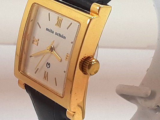 ミラショーン mira schon レディース 腕時計 スクエア 白 黒 ホワイト ブラック SS GP レザー アナログ クォーツ QZ ウォッチ 【中古】【送料無料】 ht5575