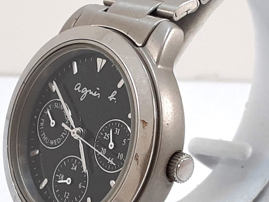 アニエスベー agnes b. レディース 腕時計 デイデイト V33J-0010 黒 ブラック シルバー SS ブレス アナログ クォーツ QZ ウォッチ 【中古】【送料無料】 ht5538