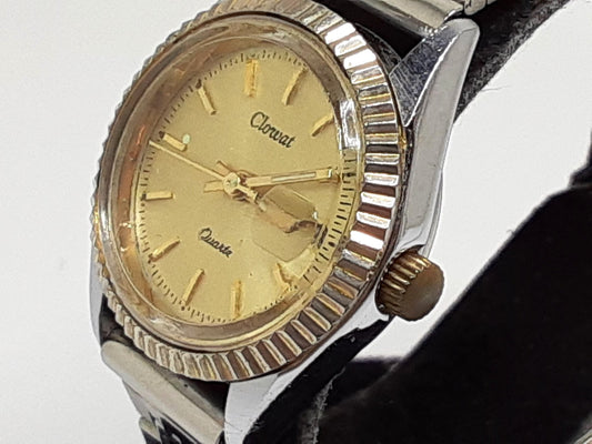 クロワット CLOWAT レディース 腕時計 デイト 15100 ゴールド シルバー SS GP ブレス アナログ クォーツ QZ ウォッチ 【中古】【送料無料】 ht5544