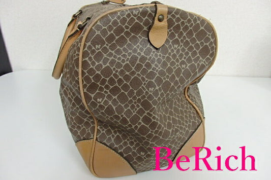 ニナリッチ NINA RICCI ボストンバッグ ハンドバッグ ベージュ ジラフ キリン柄 ロゴ トラベル 旅行 手提げ 鞄 【中古】【送料無料】 h1935