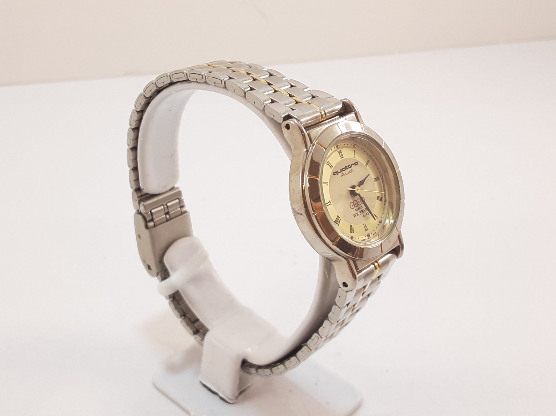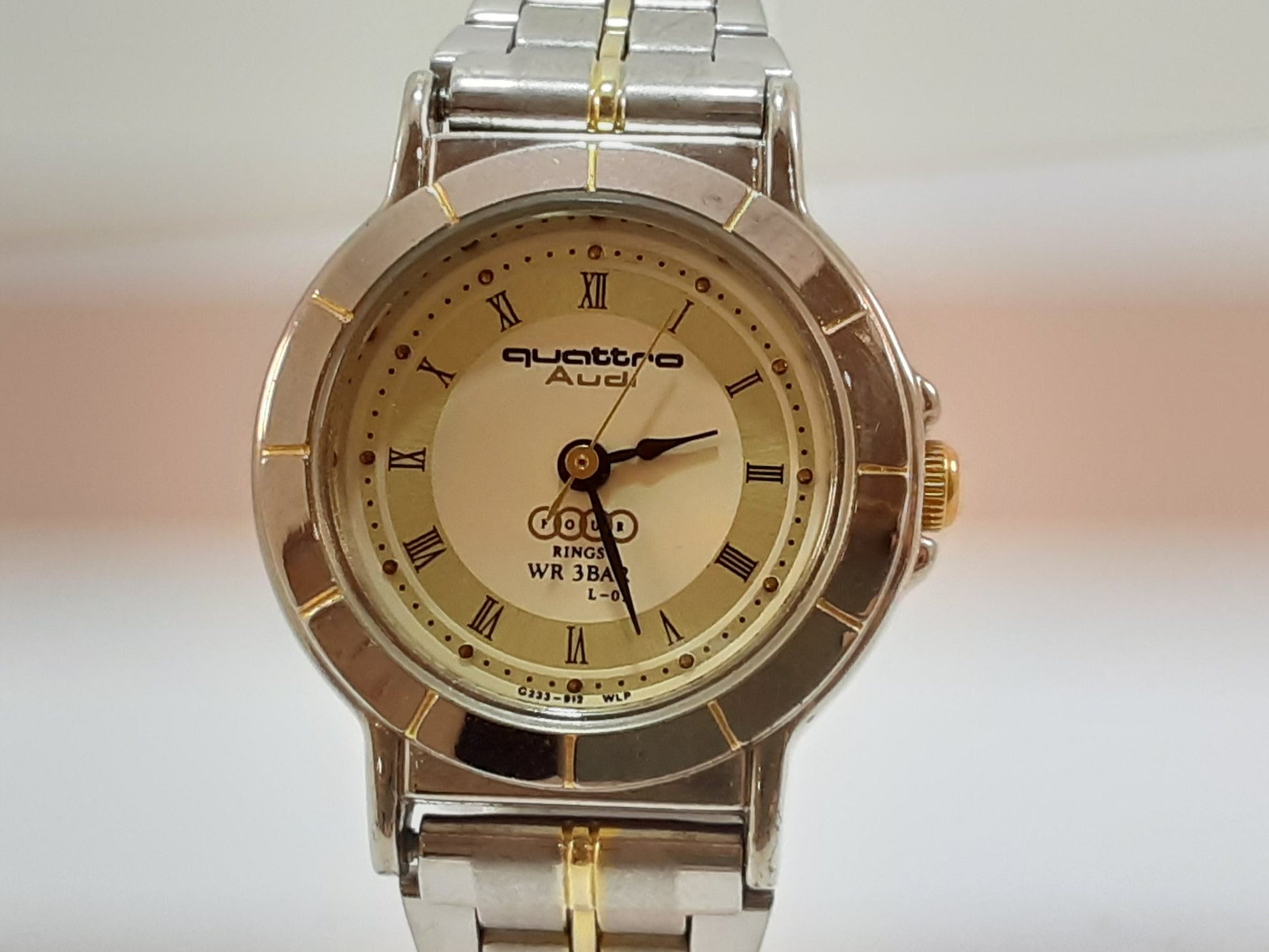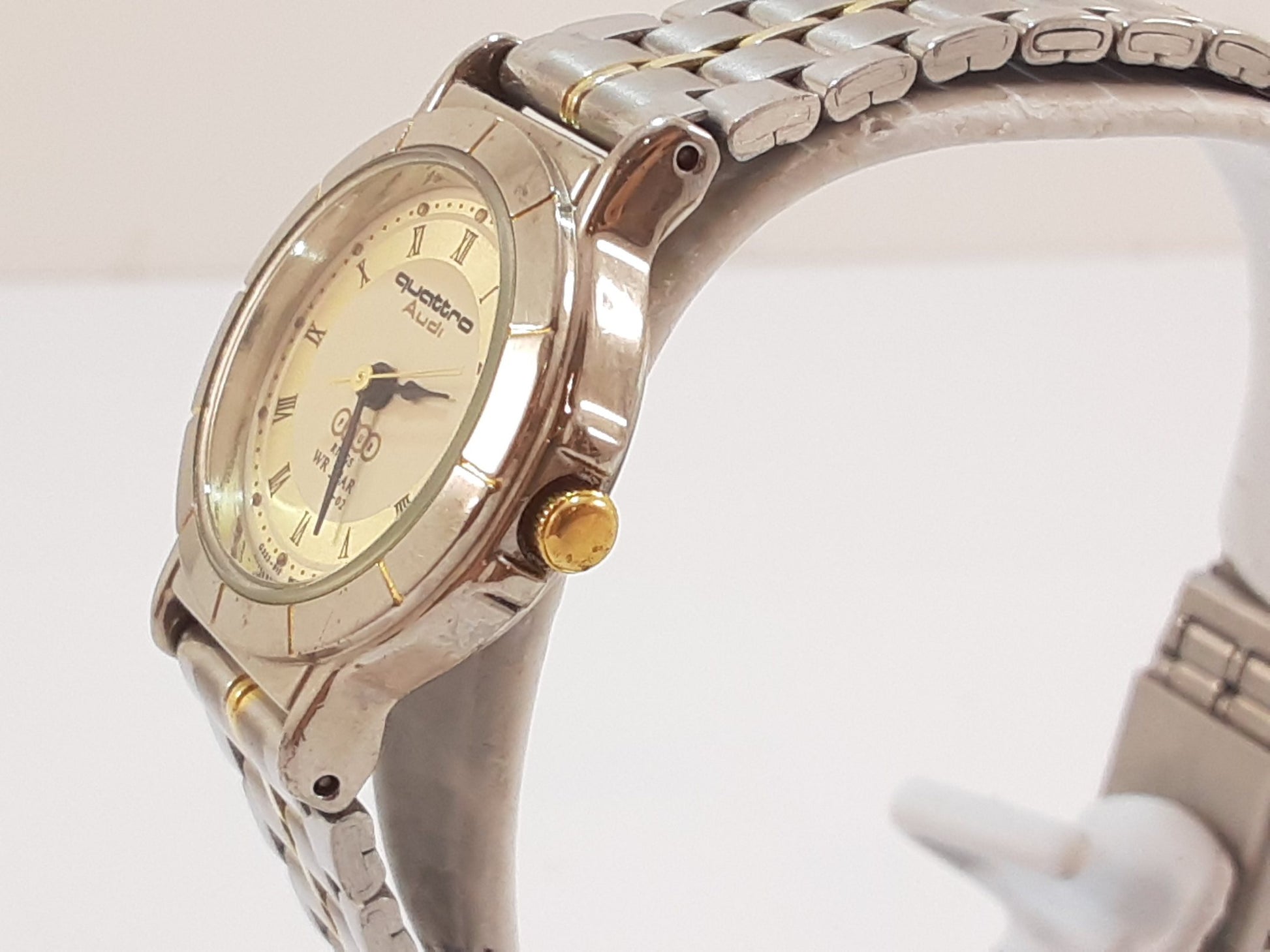 アウディ Audi クアトロ レディース 腕時計 L-02 アイボリー ゴールド シルバー SS ブレス アナログ クォーツ QZ ウォッチ QUATTRO 【中古】【送料無料】 ht5530