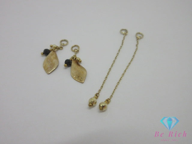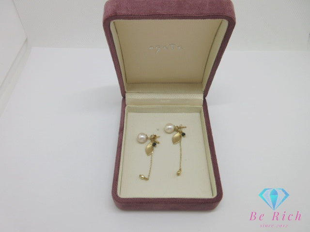 アガット agate K10 YG 真珠 パール 7.5mm 珠 カラーストーン 付 デザイン スタッド ピアス チャーム セット【中古】ba3418