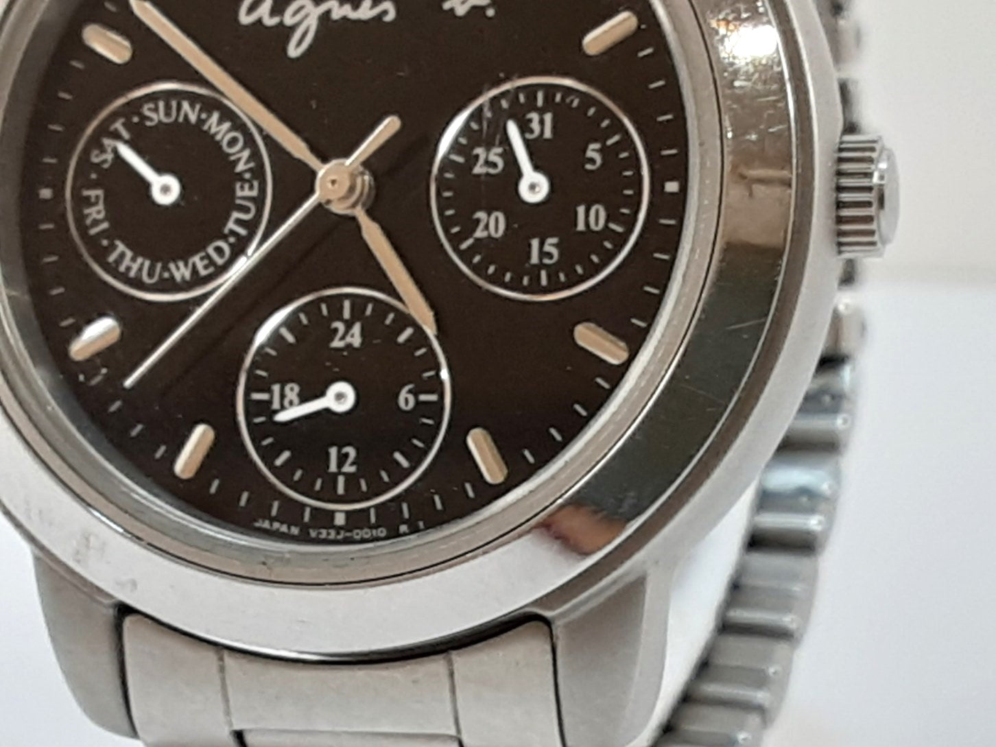 アニエスベー agnes b. レディース 腕時計 デイデイト V33J-0010 黒 ブラック シルバー SS ブレス アナログ クォーツ QZ ウォッチ 【中古】【送料無料】 ht5538