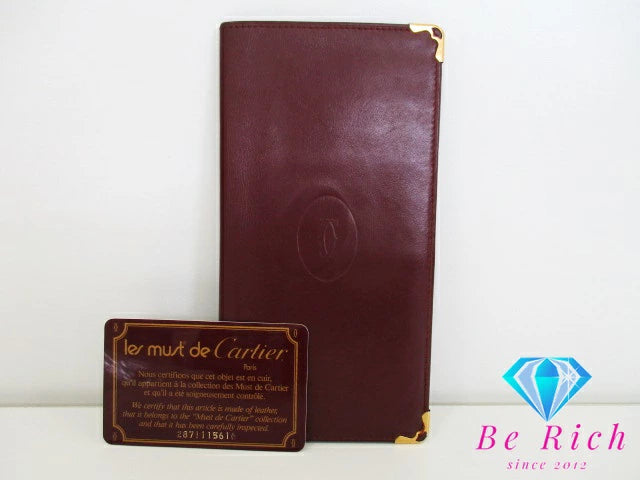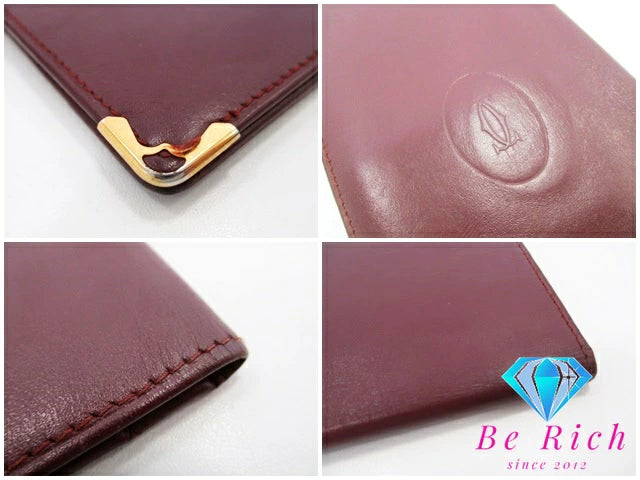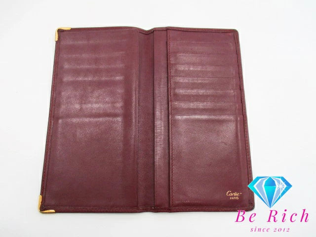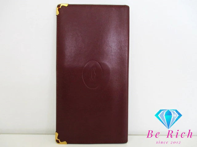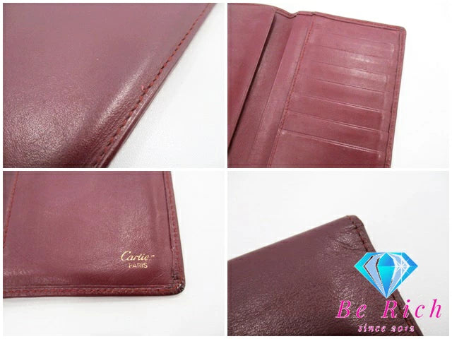 カルティエ Cartier メンズ 二つ折り財布 長財布 札入れ マスト ライン ボルドー レザー ロゴ ロング ウォレット 小銭入れなし 【中古】【送料無料】 bs3731
