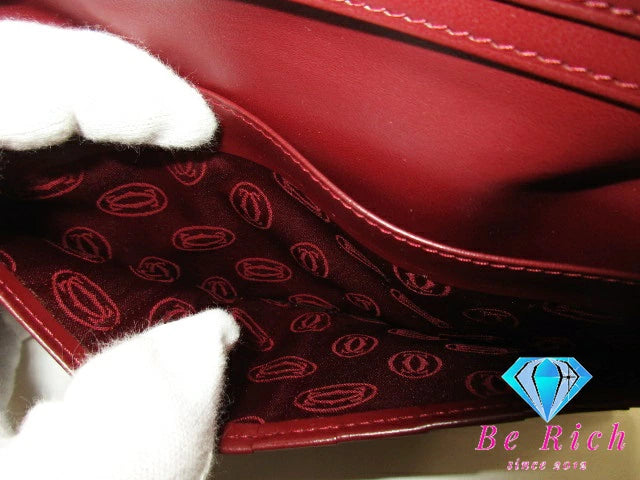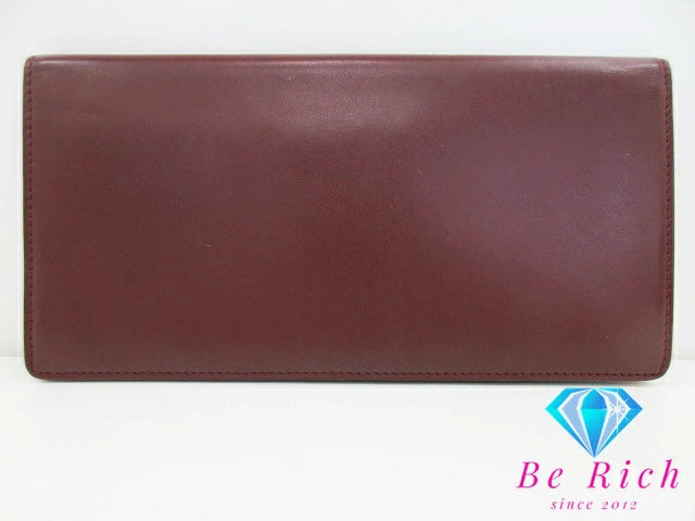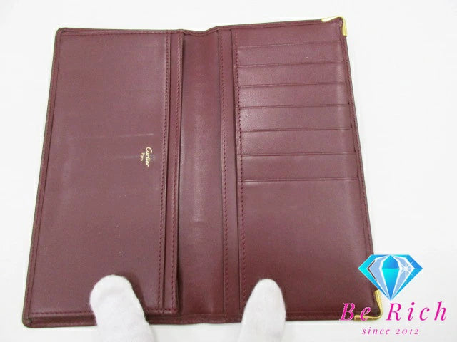 カルティエ Cartier メンズ 長財布 札入れ マスト ライン ボルドー レザー ロゴ 小銭入れなし 二つ折り財布 ロング ウォレット 【中古】【送料無料】 bs3637