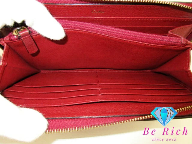 カルティエ Cartier C ドゥ カルティエ ラウンド ファスナー 長財布 CRL3001530 赤 レッド レザー ロゴ 二つ折り財布 ロング ウォレット 【中古】【送料無料】 bs3757