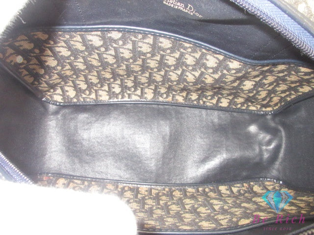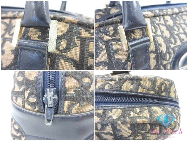 クリスチャン ディオール Christian Dior ミニ ボストンバッグ ハンドバッグ トロッター CD ロゴ ネイビー 紺 オールド 旅行 トラベル 鞄 【中古】【送料無料】 bk10161