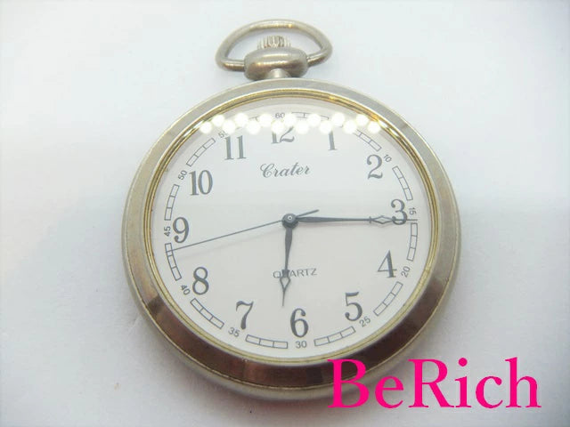 クレーター Crater 懐中時計 ポケットウォッチ 白 ホワイト 文字盤 SS シルバー QZ クォーツ アナログ ウォッチ 【中古】【送料無料】 ht3919