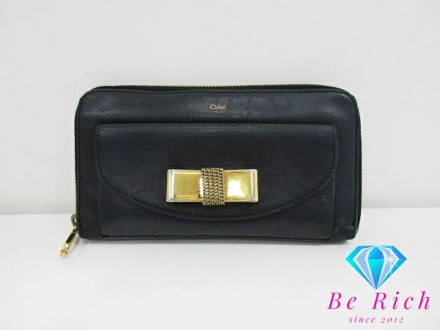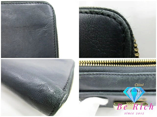 クロエ Chloe ラウンドファスナー 長財布 3P0092 リリィ 黒 ブラック レザー ロゴ ロング ウォレット 【中古】【送料無料】 bs3623
