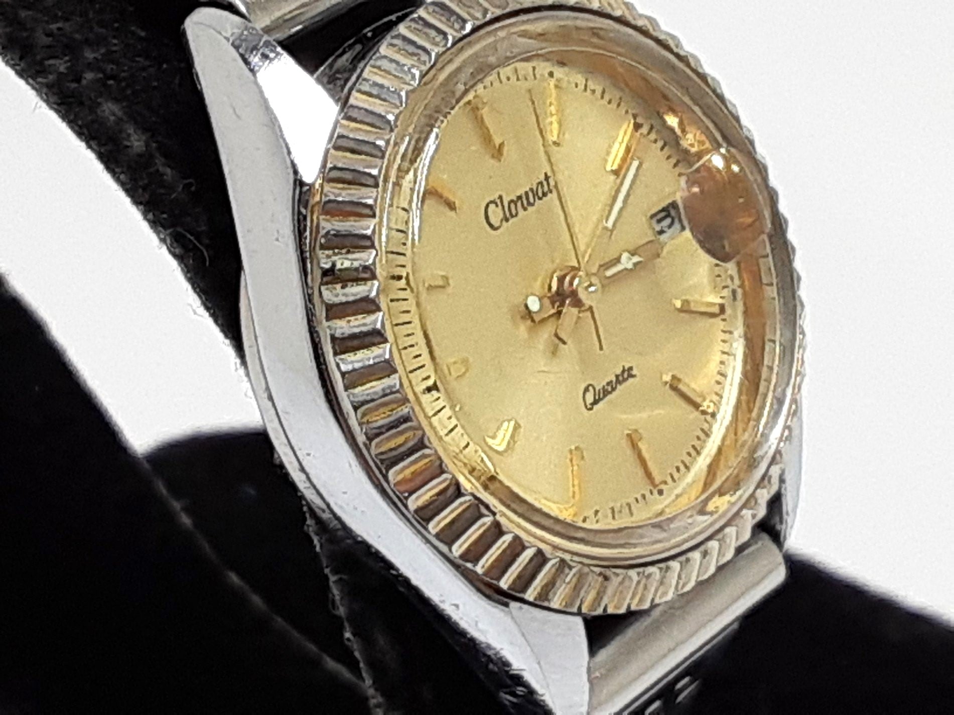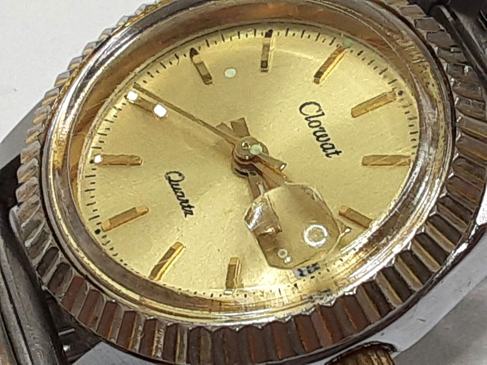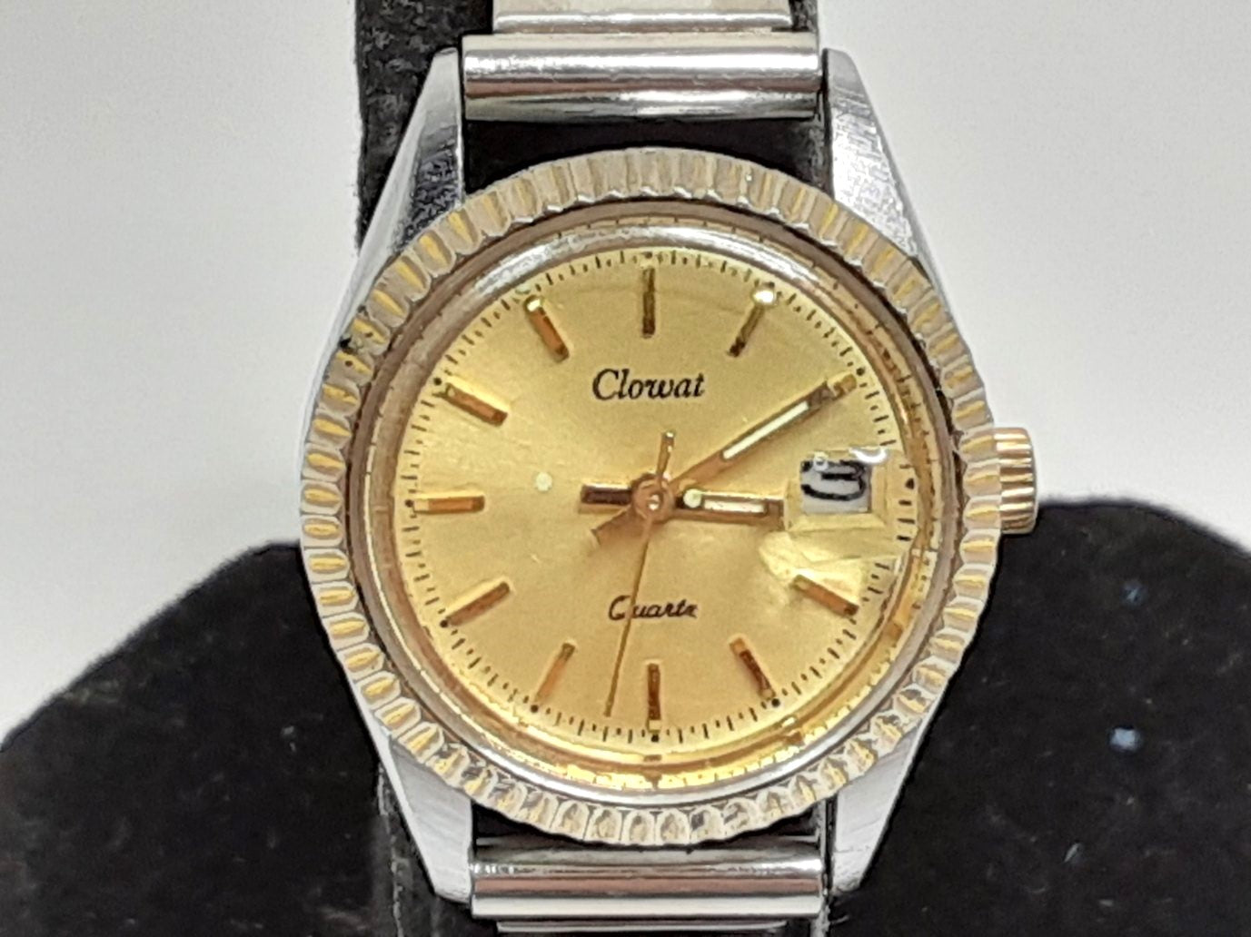クロワット CLOWAT レディース 腕時計 デイト 15100 ゴールド シルバー SS GP ブレス アナログ クォーツ QZ ウォッチ 【中古】【送料無料】 ht5544