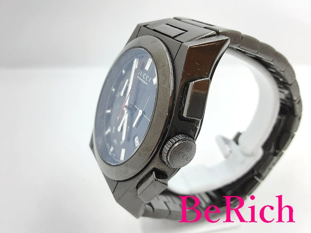 グッチ GUCCI パンテオン クロノグラフ メンズ 腕時計 デイト YA115237 黒 ブラック 文字盤 SS ブレス アナログ クォーツ QZ ウォッチ 【中古】【送料無料】 bt2830