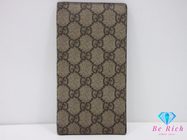 グッチ GUCCI メンズ 二つ折り 長財布 長札入れ 小銭入れなし 115149 GG スプリーム ベージュ PVC レザー ロゴ ロング ウォレット 【中古】【送料無料】bs4185