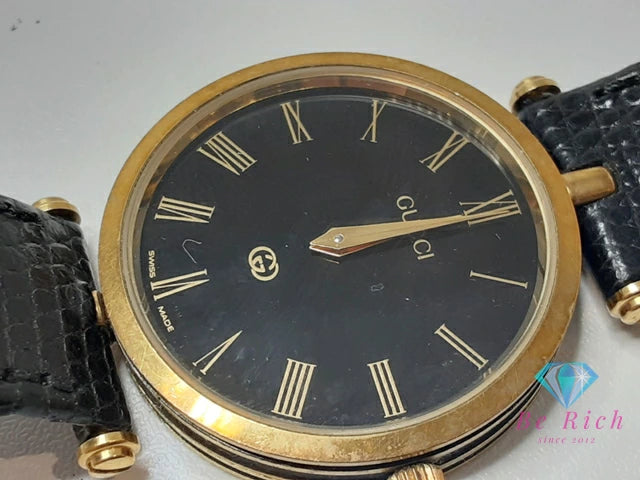 グッチ GUCCI メンズ 腕時計 黒 ブラック SS レザー アナログ クォーツ QZ ウォッチ アンティーク ヴィンテージ 【中古】【送料無料】 bt3345