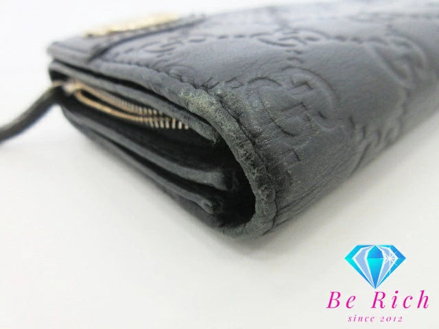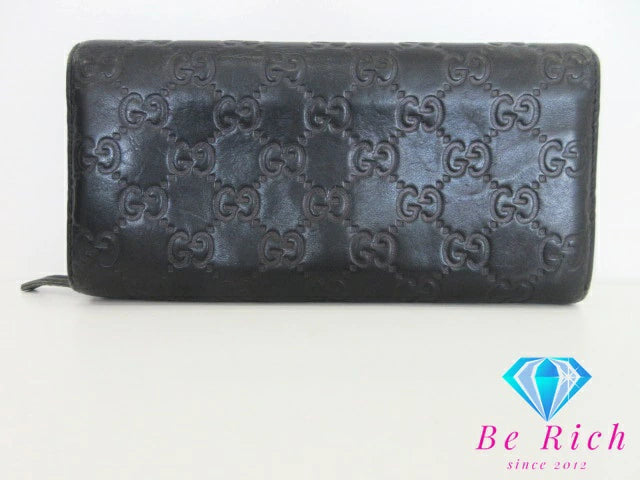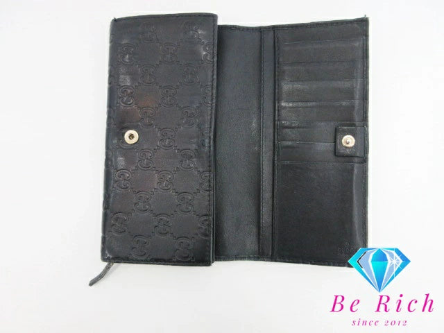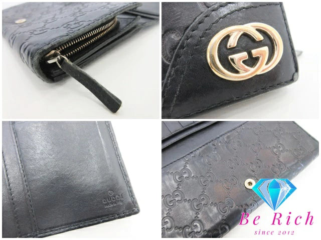 グッチ GUCCI 二つ折り長財布 154257 GG シマ レザー 黒 ブラック ロングウォレット レディース【中古】【送料無料】bs3440