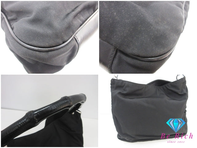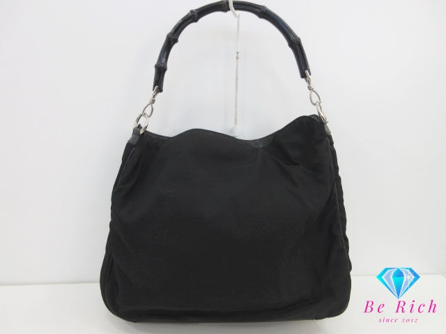 グッチ GUCCI 2way ショルダーバッグ ショルダーなし 001.1577 バンブー ハンドル ブラック 黒 ナイロンキャンバス GG ロゴ ハンドバッグ ホーボー セミ 鞄 【中古】【送料無料】 bk10371