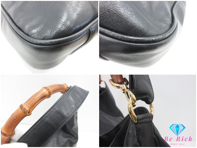 グッチ GUCCI 2way ショルダーバッグ 001.200182.1577 バンブー ハンドル ブラック 黒 レザー GG ロゴ ハンドバッグ ホーボー セミ 鞄 【中古】【送料無料】 bk10301