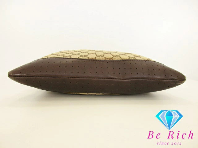 グッチ GUCCI GGキャンバス ショルダーバッグ 145857 レザー 茶 ブラウン ベージュ 手提げ レディース トートバッグ【中古】【送料無料】bk8537