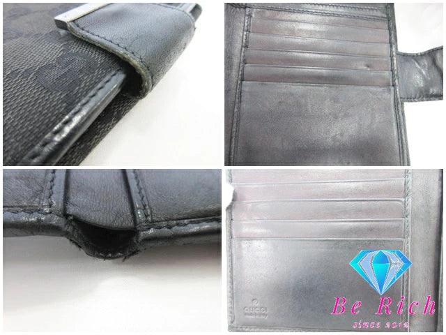 グッチ GUCCI GGキャンバス Wホック 二つ折り 財布 74229 黒 ブラック コンパクト ウォレット メンズ レディース 【中古】【送料無料】bs3435