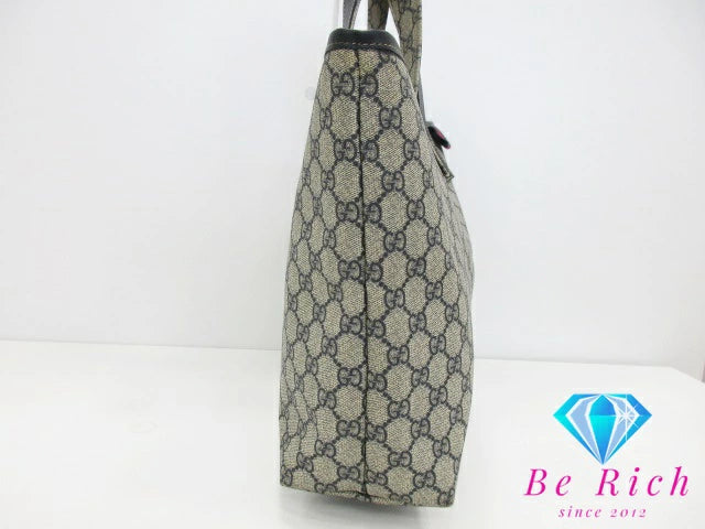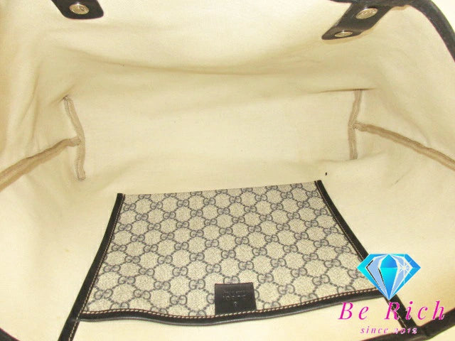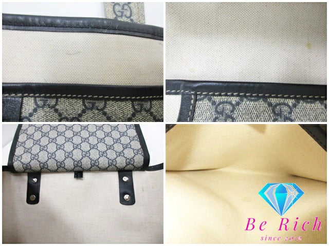 グッチ GUCCI GGプラス トートバッグ ライトベージュ ネイビー GG スプリーム レザー ショルダーバッグ レディース 手提げ 紺 ハンドバッグ【中古】【送料無料】bk8549