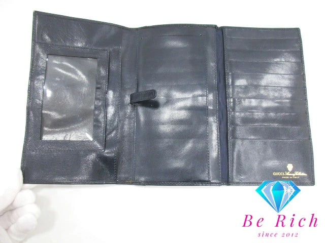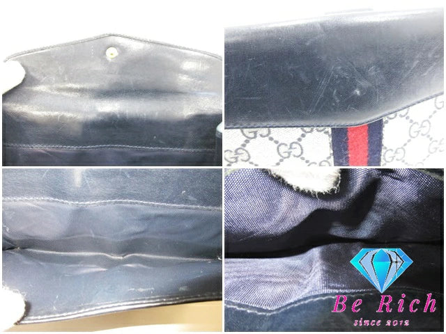 グッチ GUCCI Wホック 長財布 GG ネイビー 紺 シェリー ウェブ ロゴ PVC キャンバス レザー 二つ折り財布 ロング ウォレット オールド ヴィンテージ 【中古】【送料無料】 bs3227