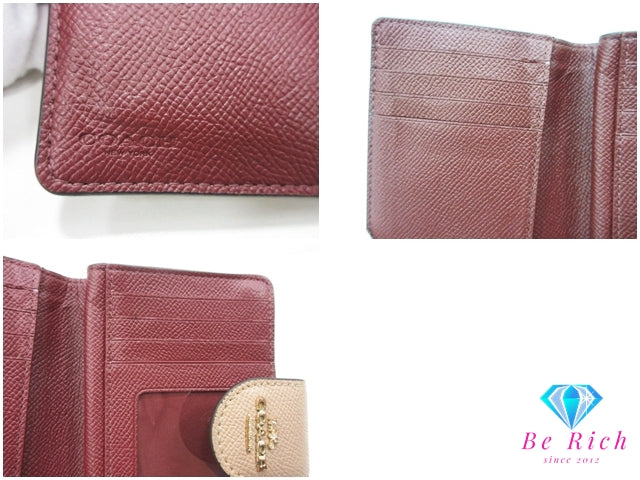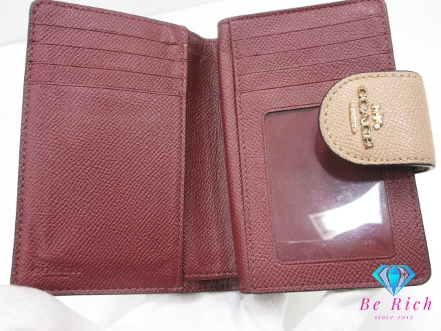 コーチ 二つ折り 財布 6390 ベージュ ミディアム コンパクト ウォレット レザー COACH 【中古】【送料無料】bs3943