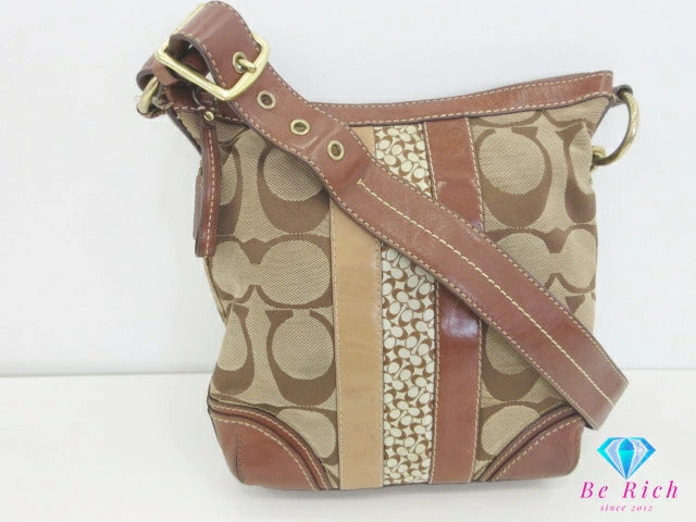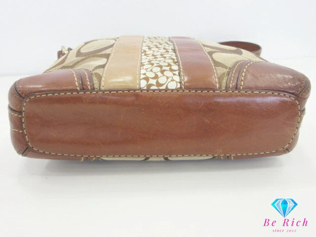 コーチ COACH ショルダーバッグ 10542 ハンプトンズ シグネチャー ストライプ ミディアム ダッフル ロゴ 肩掛け 斜め掛け 鞄 【中古】【送料無料】 bk9736