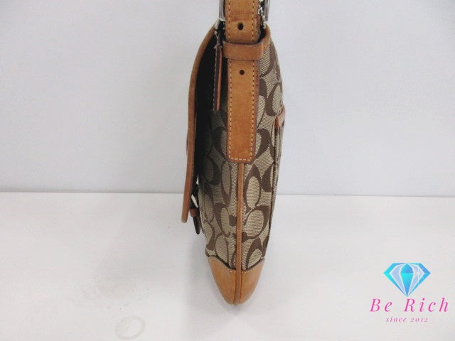 コーチ COACH ショルダーバッグ 6079 シグネチャー スモール ヒッピー 茶 ブラウン キャンバス レザー ロゴ ポシェット 斜め掛け 肩掛け バッグ 鞄 メンズ レディース 【中古】【送料無料】bk9463
