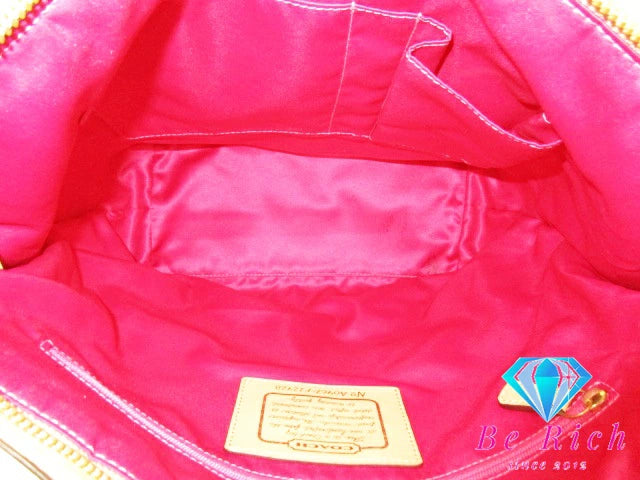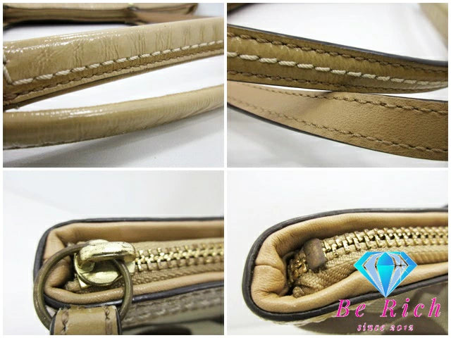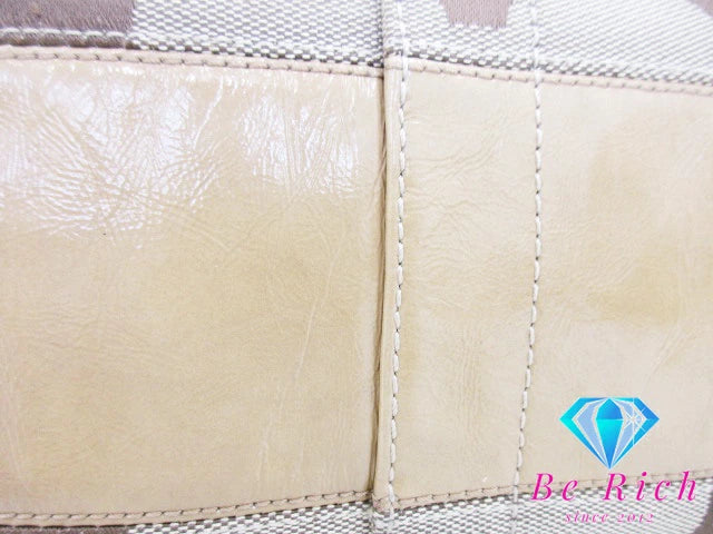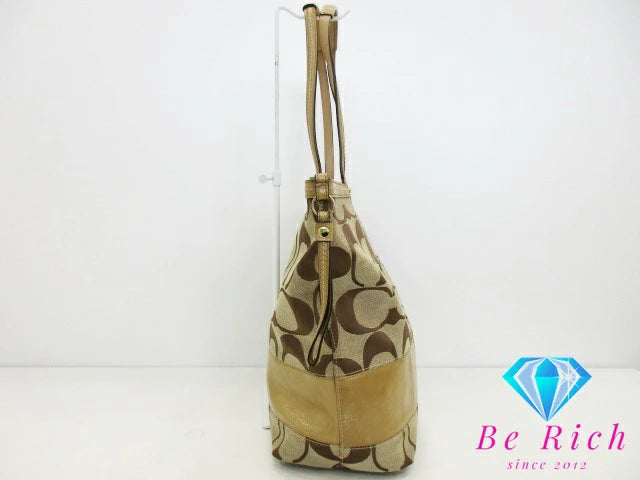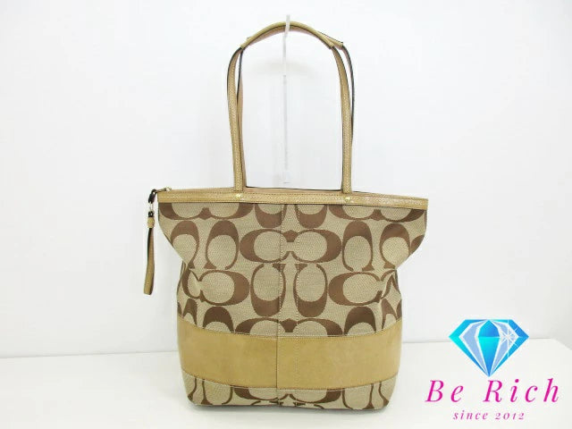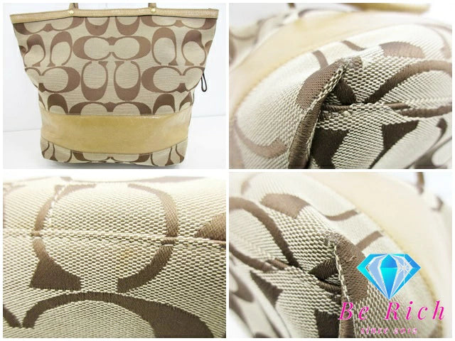 コーチ COACH トートバッグ ハンドバッグ F12428 シグネチャー ストライプ パテント ボーダー カーキ ベージュ キャンバス レザー ロゴ ショルダーバッグ 鞄 【中古】【送料無料】bk8389