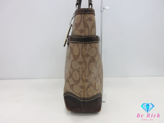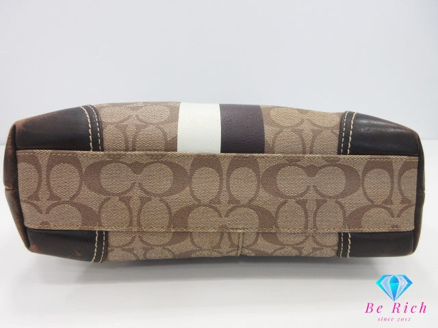 コーチ COACH トートバッグ F14477 ヘリテージ シグネチャー ストライプ ブラウン 茶 PVC レザー ロゴ ハンドバッグ ショルダーバッグ 手提げ 肩掛け 鞄 【中古】【送料無料】 bk10309