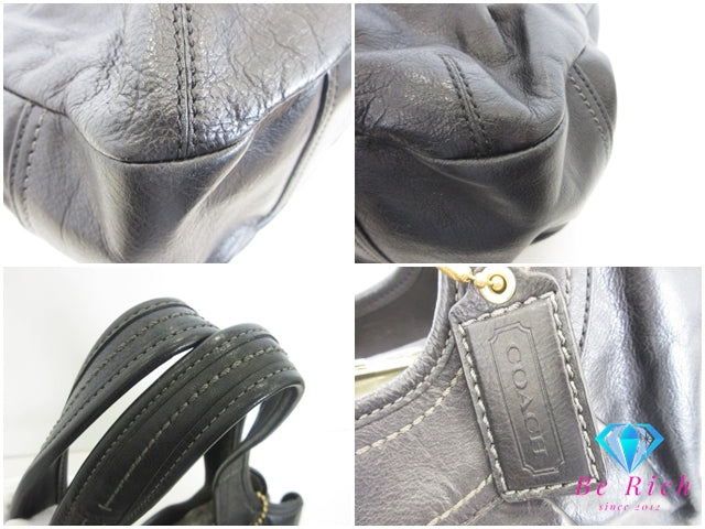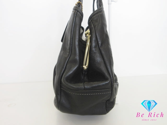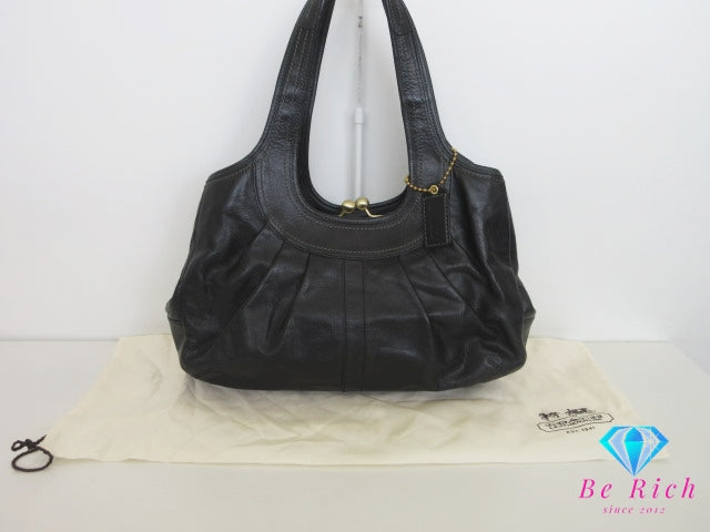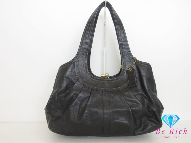 コーチ COACH ハンドバッグ ショルダーバッグ 12248 がま口 黒 ブラック プリーツ レザー ロゴ ホーボー 手提げ 肩掛け 鞄 【中古】【送料無料】 bk10350