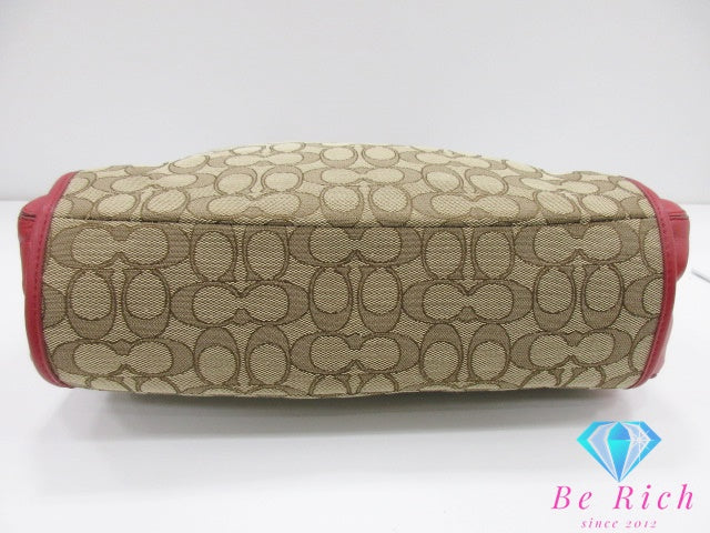 コーチ COACH フィービー ワン ショルダーバッグ F36424 シグネチャー ベージュ 赤 レッド キャンバス レザー ロゴ ハンドバッグ 鞄 【中古】【送料無料】 bk9616