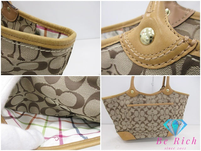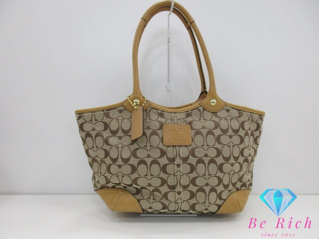 コーチ COACH ブリーカー シグネチャー トートバッグ F12369 カーキ ベージュ キャンバス レザー ロゴ ショルダーバッグ ハンドバッグ 鞄 【中古】【送料無料】 bk9614