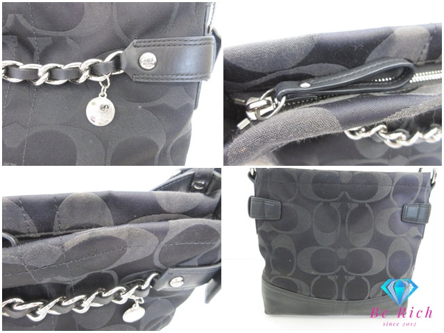 コーチ COACH 2way ショルダーバッグ F18862 シグネチャー サテン チェーン ダッフル 黒 ブラック キャンバス レザー ロゴ 肩掛け 斜め掛け 鞄 【中古】【送料無料】 bk10076
