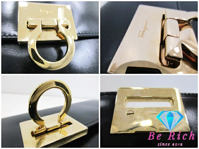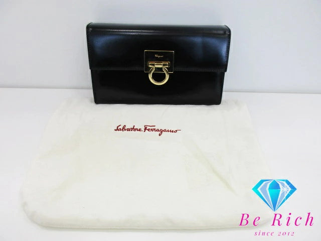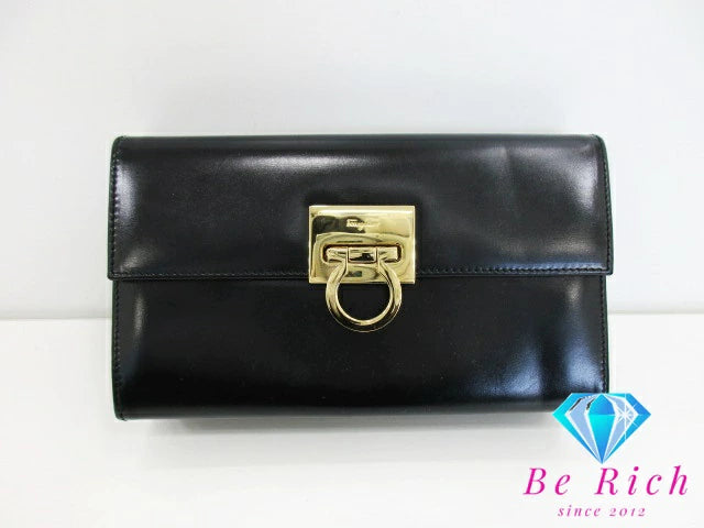 サルヴァトーレ フェラガモ ガンチーニ クラッチバッグ セカンドバッグ AQ-21 9629 黒 ブラック カーフ レザー ロゴ ハンドバッグ Salvatore Ferragamo 【中古】【送料無料】 bk8683