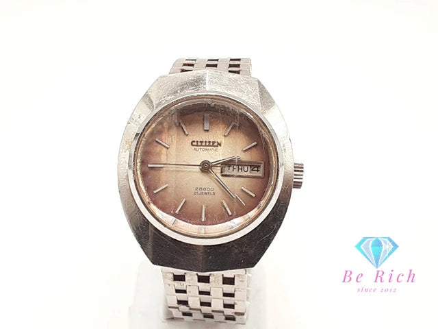 シチズン CITIZEN 28800 21石 自動巻き レディース 腕時計 デイデイト 4-661079-K カット ガラス グレー グラデ シルバー SS ブレス アンティーク ヴィンテージ アナログ AT ウォッチ 【中古】【送料無料】 ht5754