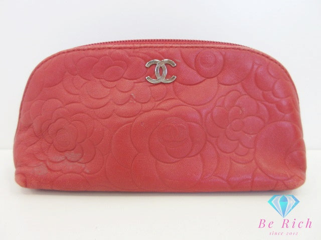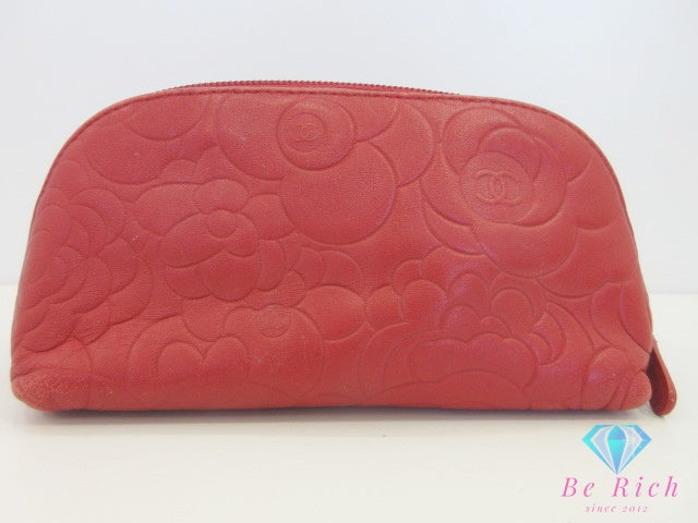 シャネル CHANEL カメリア コスメ ポーチ レッド 赤 レザー ココマーク CC ロゴ アクセサリー マルチ ポーチ 鞄 【中古】【送料無料】 bc2246