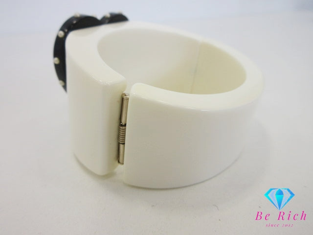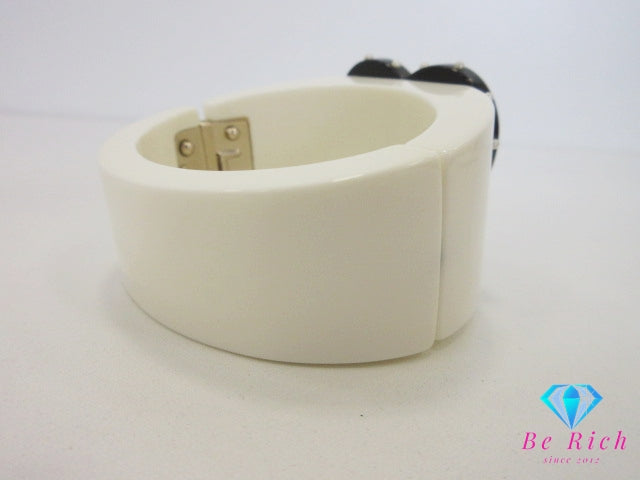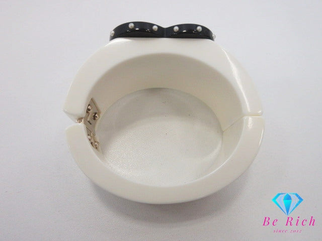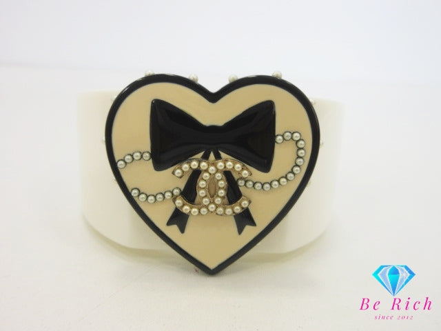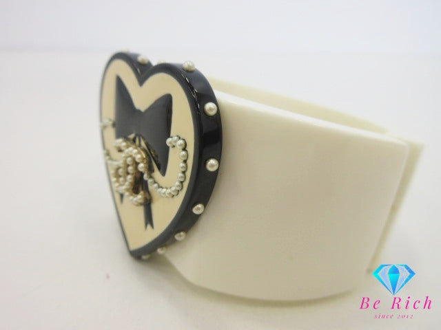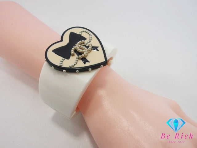 シャネル CHANEL ハート モチーフ リボン フェイク パール ココマーク ロゴ バングル ブレスレット アイボリー 白 ホワイト 黒 ブラック CC ロゴ プラスチック ワイド リストバンド ジュエリー アクセサリー 小物 【中古】【送料無料】 ba3558