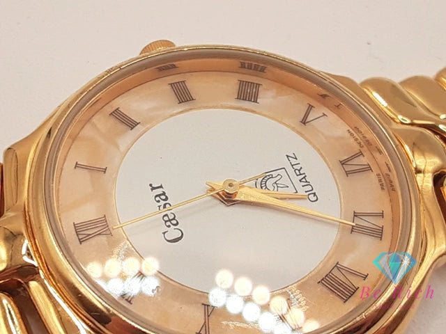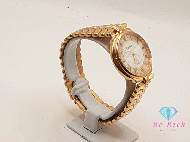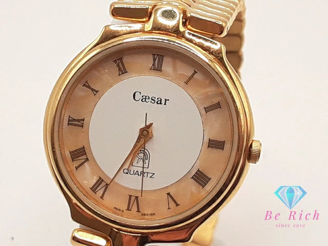 シーザー caesar ボーイズ 腕時計 白 ホワイト ゴールド SS GP ブレス アナログ クォーツ QZ ドレス ウォッチ ユニセックス メンズ レディース 【中古】【送料無料】ht5911