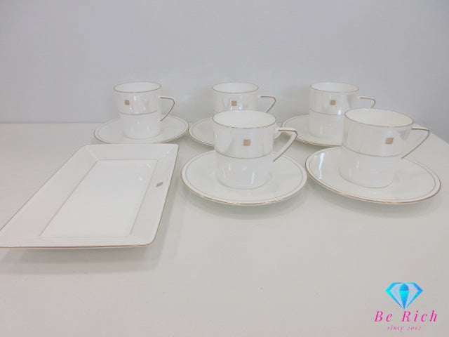ジバンシィ GIVENCHY トレー 付 コーヒー カップ & ソーサー 5客 セット ホワイト 白 ゴールド 陶器 コップ 皿 紅茶 食器 テーブル ウェア 製陶 【中古】【送料無料】 bh2759