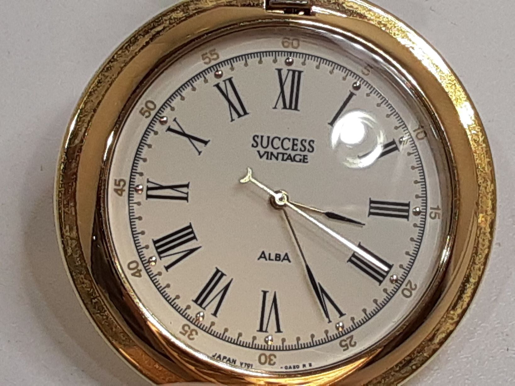 セイコー SEIKO アルバ サクセス ヴィンテージ 懐中時計 ポケット ウォッチ V701-0A10 白 ホワイト ゴールド SS GP アナログ クォーツ QZ ALBA SUCCESS VINTAGE 【中古】【送料無料】 ht5462