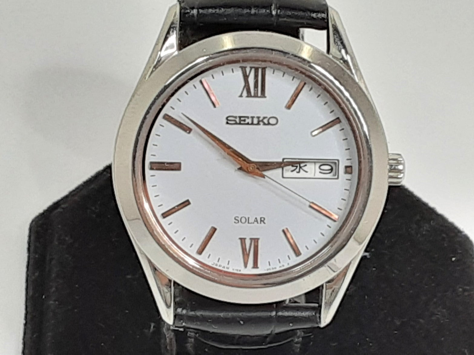 セイコー SEIKO ソーラー メンズ 腕時計 デイデイト V158-0BA0 白 ホワイト ブラック 黒 SS レザー ブレス アナログ クォーツ QZ ウォッチ 【中古】【送料無料】 ht5549