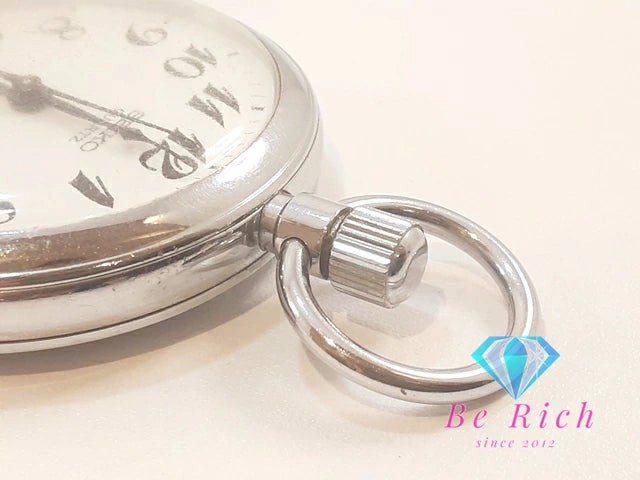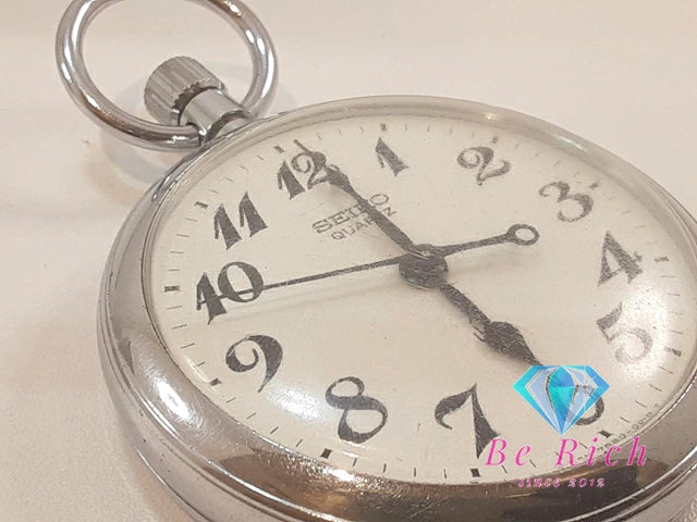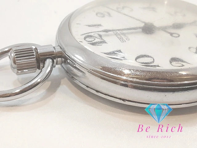 セイコー SEIKO 懐中時計 ポケット ウォッチ 7550-0010 白 ホワイト シルバー SS メッキ アナログ クォーツ QZ 時計 鉄道時計 【中古】【送料無料】 ht6234
