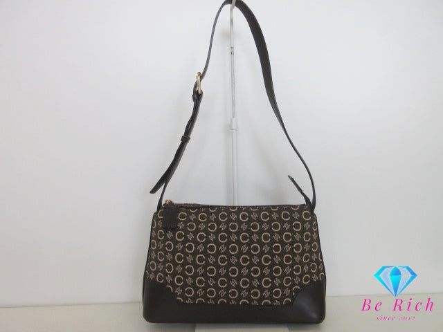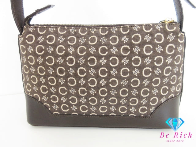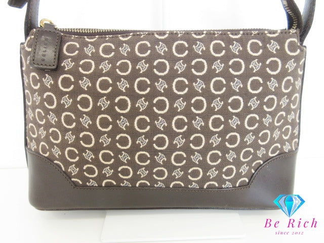 セリーヌ CELINE ショルダーバッグ Cマカダム 馬車 ブラウン 茶 ジャガード キャンバス レザー クロスボディ 肩掛け 斜め掛け 鞄 ヴィンテージ 【中古】【送料無料】 bk10355