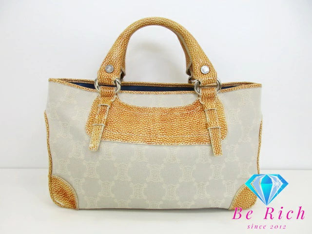 セリーヌ CELINE ハンドバッグ マカダム ホワイト 白 オレンジ PVC キャンバス ロゴ 手提げ 鞄 【中古】【送料無料】 bk6893