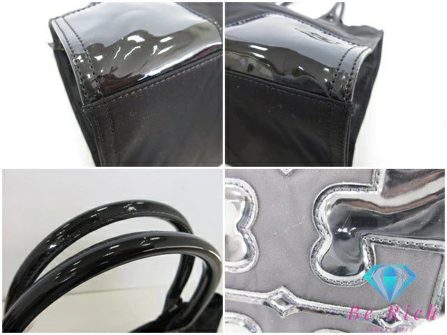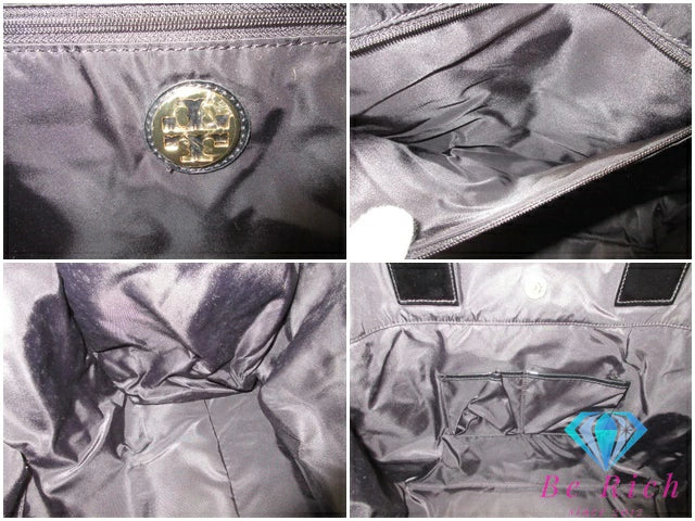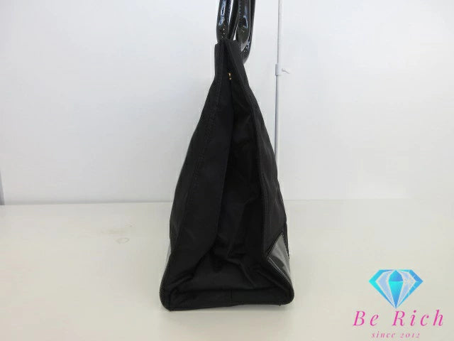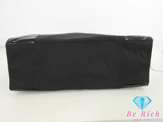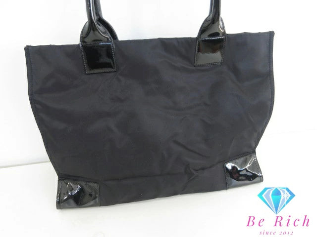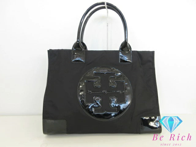 トリーバーチ TORY BURCH エラ ラージ トートバッグ ハンドバッグ 黒 ブラック ナイロン パテント レザー エナメル ロゴ ショルダーバッグ Ella 【中古】【送料無料】 bk9749