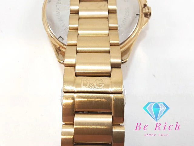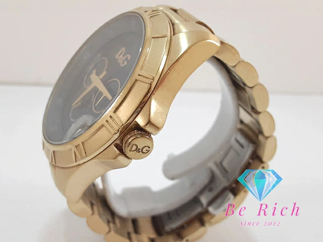 ドルチェ & ガッパーナ Dolce & Gabbana D&G シャモニ メンズ 腕時計 デイデイト ブラック 黒 SS GP ブレス ロゴ アナログ クオーツ QZ ウォッチ Chamonix 【中古】【送料無料】 bt3293